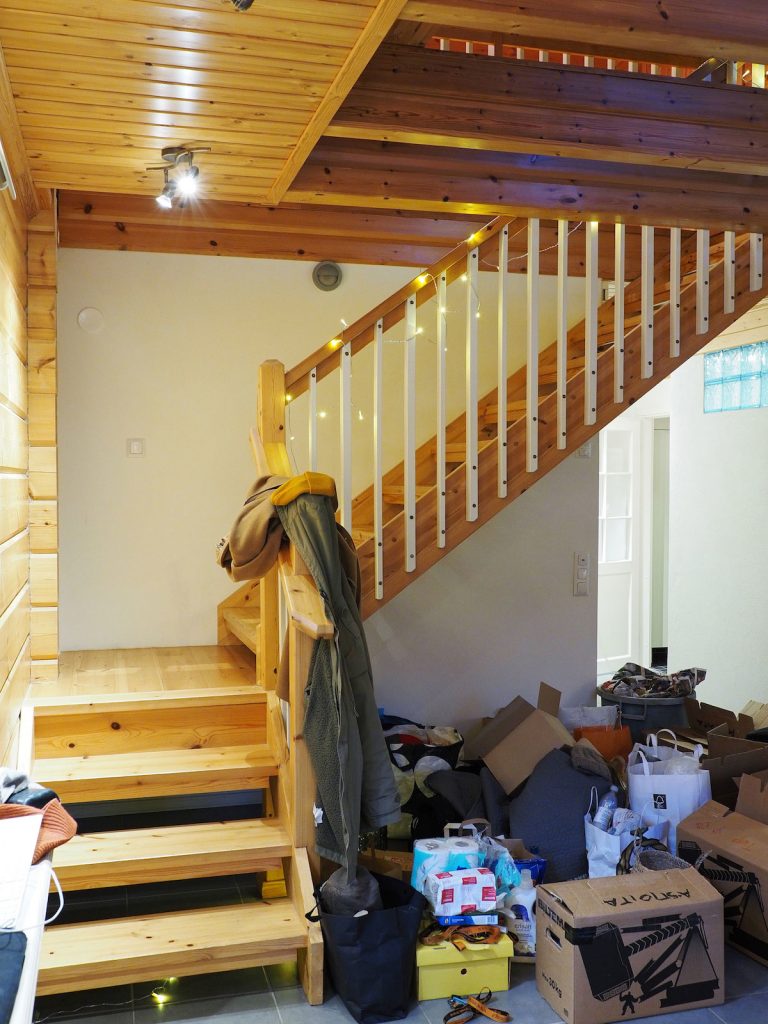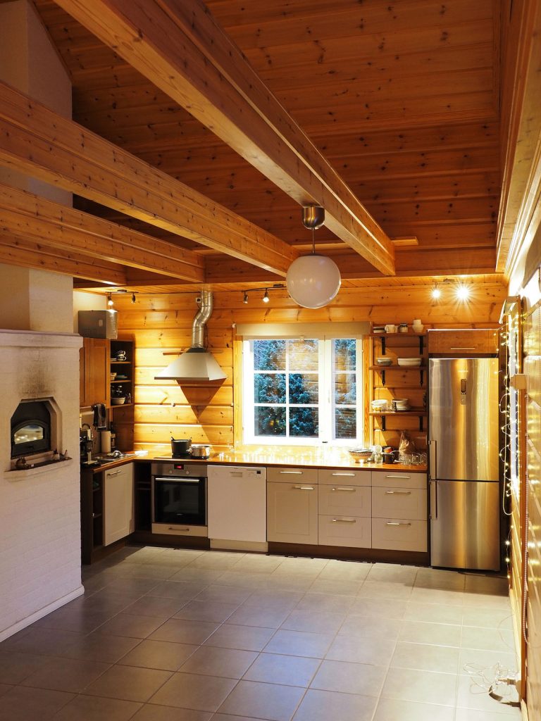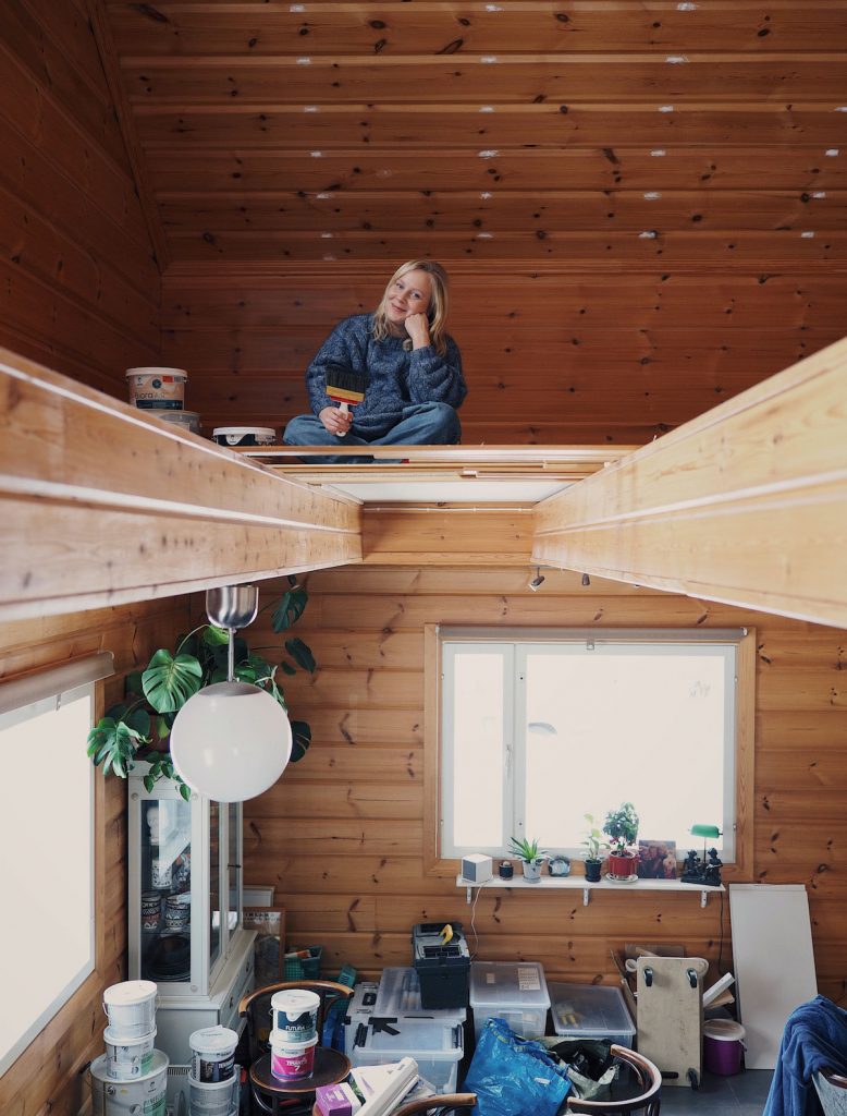 我和室内建筑师机构Aare视觉一起讨论了我们家的色调问题。我们想按原样保存木屋的原木,而不用油漆,但是室内的松木板数量有些过多,所以最终我们决定将一部分的原木进行隐藏。