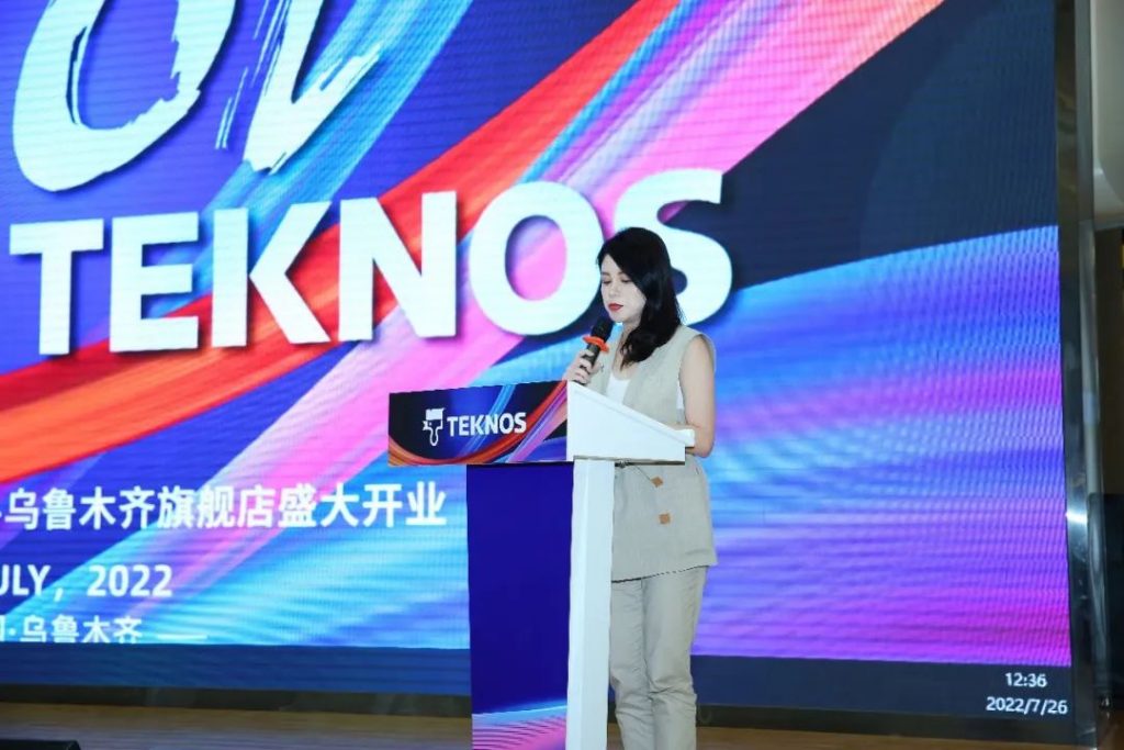 随后,泰克诺斯集团中国区执行总经理Jaime Chee女士现场致辞,对乌鲁木齐红星店开业表示热烈的庆贺;同时对申酉信集团的专业实力以及高度效率给予高度肯定,自2020年泰克诺斯正式授予申酉信集团建筑涂料业务中国区总代理的身份,双方一路彼此信任合作,经过两年多的不懈努力,取得今日辉煌成绩,在此对所有为泰克诺斯付出时间精力的伙伴们致以真诚的感谢。