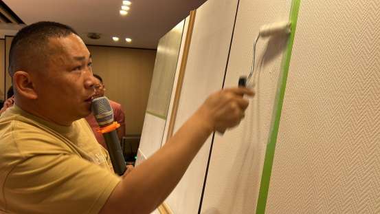 第二天是申酉信运营总监邱磊,站在技术端,从进口产品到国产产品,从3°光泽产品到20°光泽产品,从防水系列产品再到除醛系列产品等等,贯穿泰克诺斯全体系产品,多个维度给大家讲解了泰克诺斯体系产品与特点。让学员点对点、全方位了解每个产品的特色,未来能够更好的为消费者提供最适合不同消费者的选择需求,从而带来最佳的墙面解决方案。