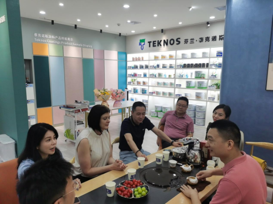 2023年4月18-21日,泰克诺斯芬兰总部商务考察团:泰克诺斯集团首席商务官Marcel Dissel 马塞尔、集团建筑涂料商务总监Michelle Buckland米歇尔、泰克诺斯集团中国区执行总经理Jaime Chee、泰克诺斯民用漆销售负责人Kevin等一行来华实地考察,申酉信集团董事长薛辉、申酉信集团副总裁梁建平、申酉信集团深圳子公司乔振旭一行热情接待。