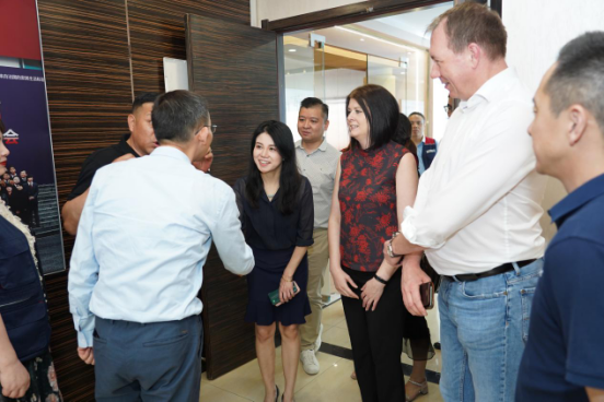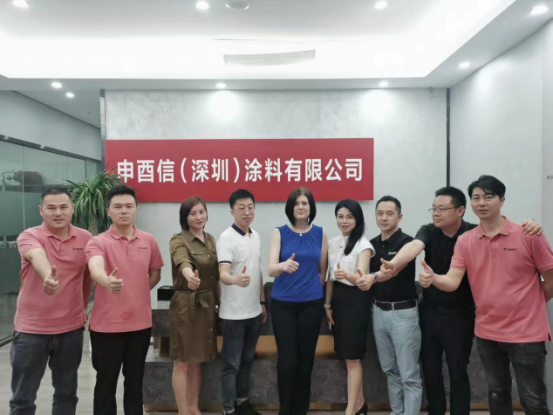 随后,集团建筑涂料商务总监Michelle Buckland米歇尔到达申酉信集团深圳子公司,在与申酉信集团深圳子公司负责人乔振旭乔总的交谈中,她表示,非常感谢全国申酉信子公司的齐心协力、共克时艰,让泰克诺斯从0开始迅速发展到全国近200家专卖店,取得了如此优异的市场成绩,未来可期。