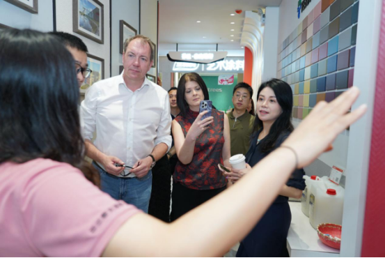 整个深圳区域的考察行程紧凑而有序,集团建筑涂料商务总监Michelle Buckland米歇尔对专卖店设计、产品系列、施工服务及门店经营等进行了多维度考察并给予了极高的肯定。她表示,希望泰克诺斯在做好自身品牌发展的同时要加强与装饰公司的合作交流,充分借助当地装饰公司的优势,加快提升泰克诺斯品牌在中国市场的发展。
