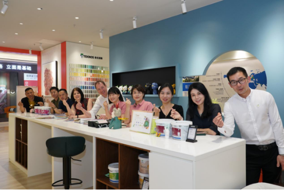 泰克诺斯集团首席商务官Marcel Dissel 马塞尔和集团建筑涂料商务总监Michelle Buckland米歇尔表示,没有什么比让客户看见真实使用效果更有说服力的事情,细节展示非常重要,专卖店在这方面做的很nice!