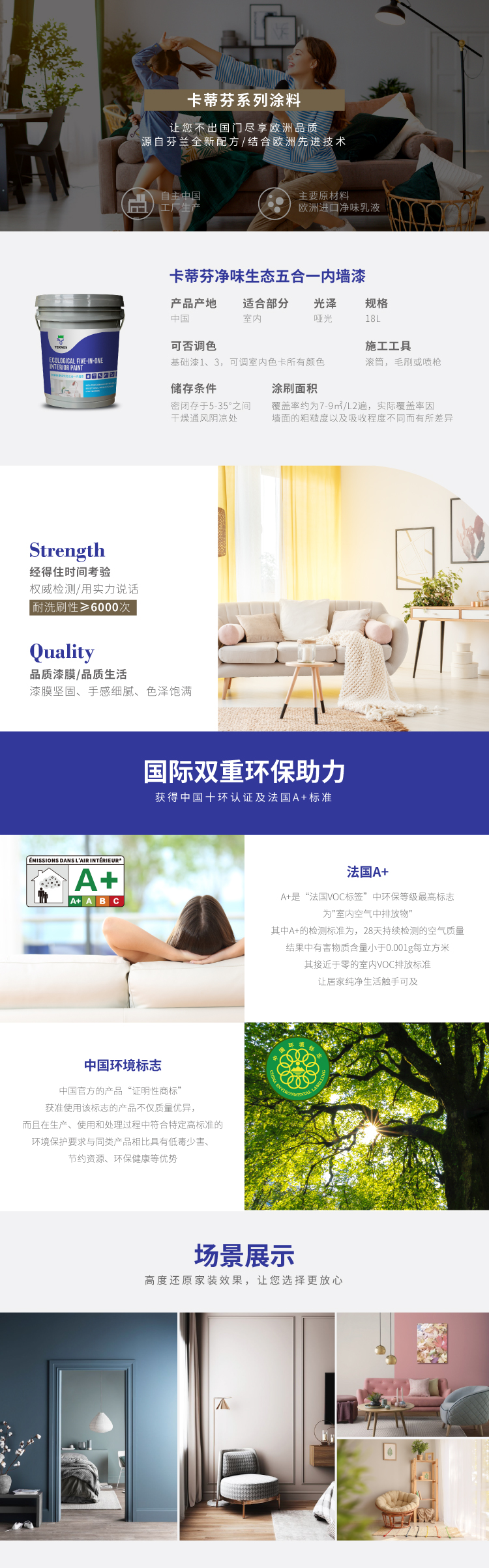 卡蒂芬净味生态五合一内墙漆 TAKKATIE ECOLOGICAL FIVE-IN-ONE(18L)