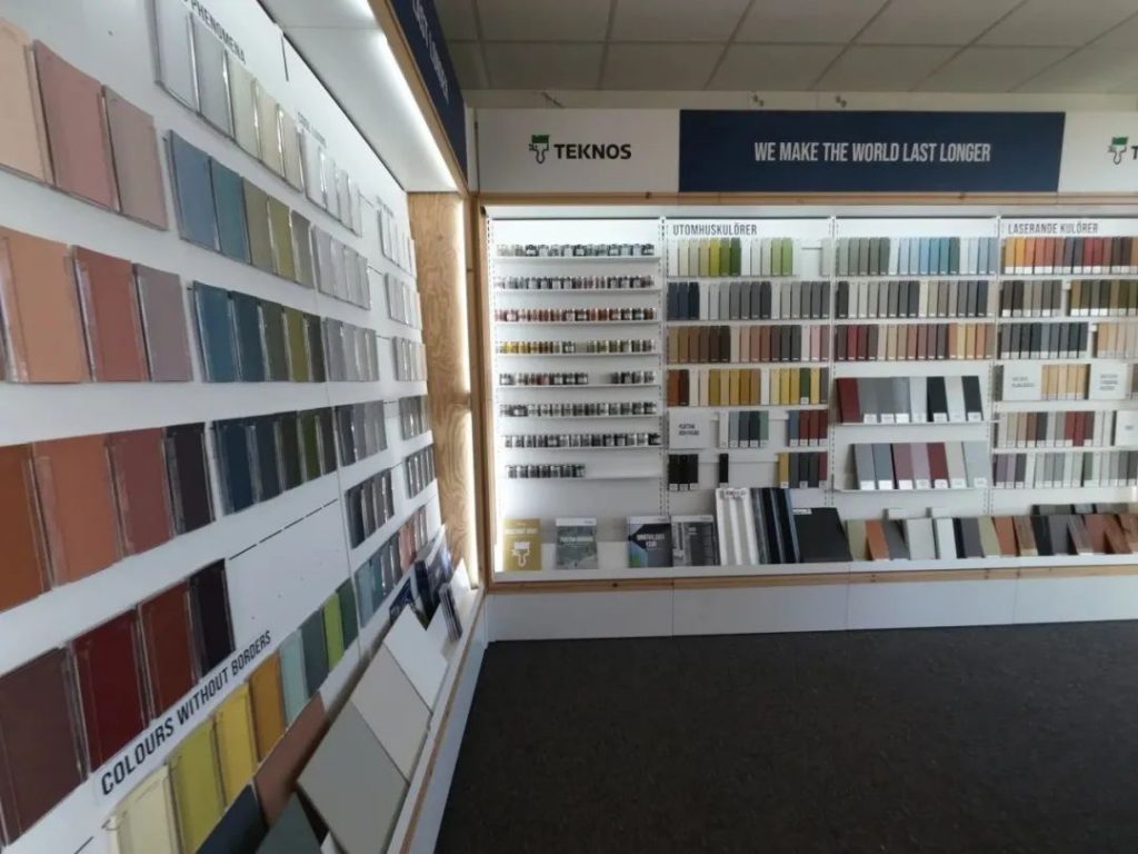 瑞典泰克诺斯Linköping门店位于核心商圈,是一家集仓储、物流、销售及调色等服务为一体的综合服务中心,主打一站式购物,总面积750平方米,单店年销售额可达6000万欧元。