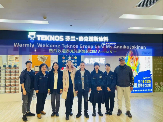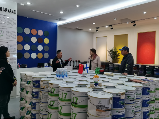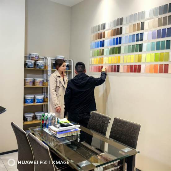 在参观过程中,泰克诺斯集团CEM Annika女士特别关注用户对于色彩的体验感受以及泰克诺斯自动调色系统为客户带来的便利性。申酉信集团董事长薛辉先生向泰克诺斯集团CEM Annika女士介绍了中国传统美色以及当代年轻人热衷的潮流色彩,并表示泰克诺斯流行色为用户带来了更多的设计灵感。