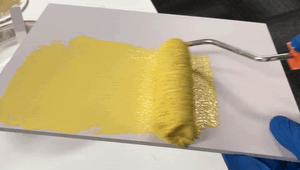 为了检测TEKNOS艾科拉钻石7内墙漆的上墙效果以及干燥所需时长,小编现场用滚筒进行了涂刷,施工过程简单方便,刷漆第一遍后20分钟内就呈现了表干的状态。