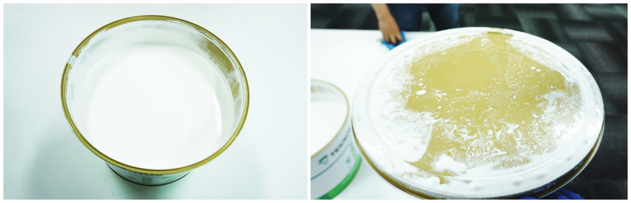 接下来,小编对TEKNOS艾科拉钻石7内墙漆进行开罐观察。我们可以明显看到,涂料呈现纯正、浓厚、色泽清晰明朗的乳白色状态,表面平滑柔顺;未出现任何的结块、分层和沉淀的现象,即使是盖子上沾到的漆都呈现液体状态,没有任何的干燥现象。
