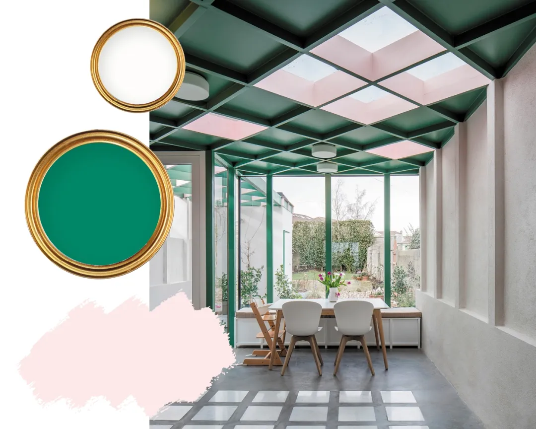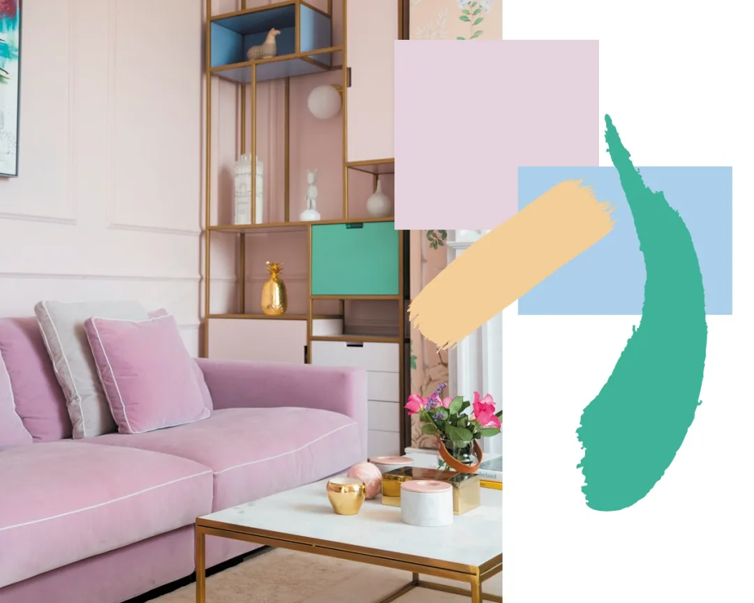 第二种搭配方式:可以选择色轮上彼此相对的颜色组成互补调色板。比如粉红色和绿色、黄色和紫色等经典配对。在千禧一代的群体中,更容易被粉红色和薄荷绿色的搭配所吸引。